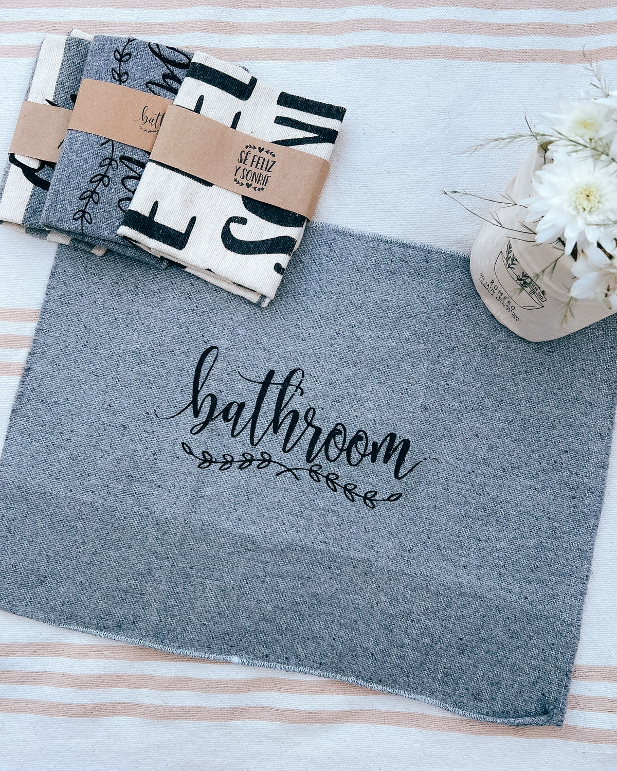 ¡Un detalle que transforma tu hogar desde la entrada! ✨ Nuestros paños de piso vienen con frases súper lindas para darle un toque cálido y decorativo a tu baño, recibidor o cualquier rincón que quieras realzar.